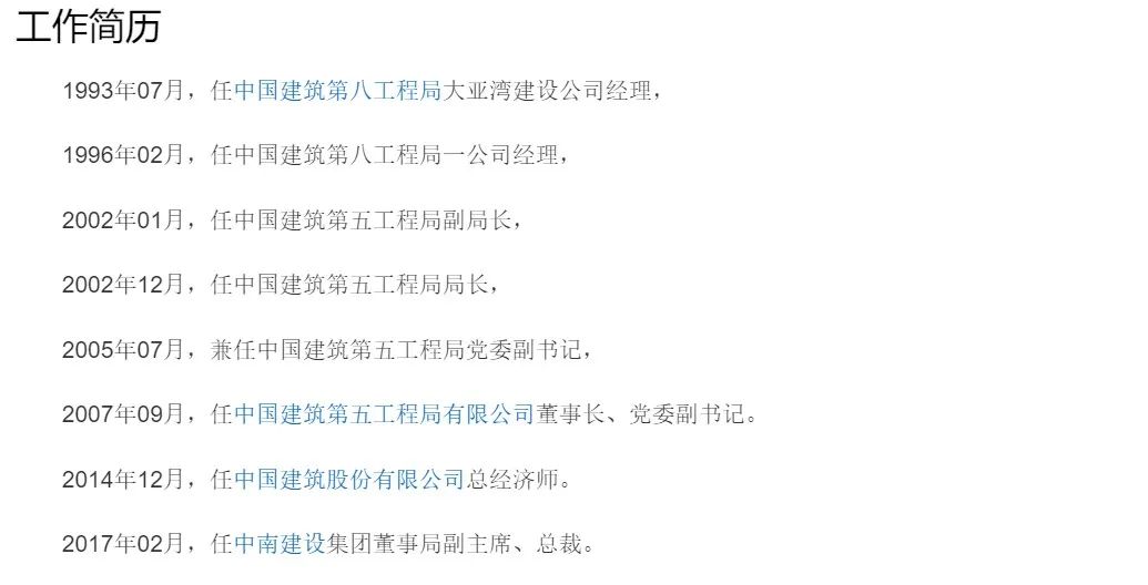曾為中國建筑第五工程局有限公司董事長、中國建筑股份有限公司總經濟師