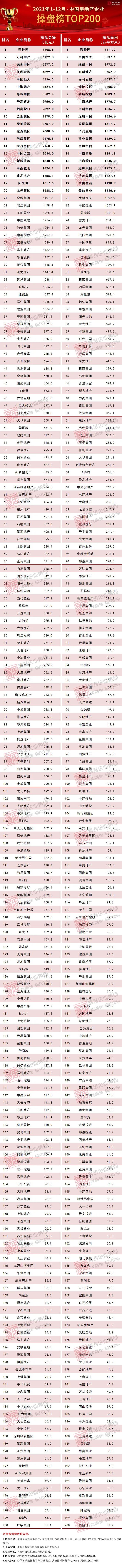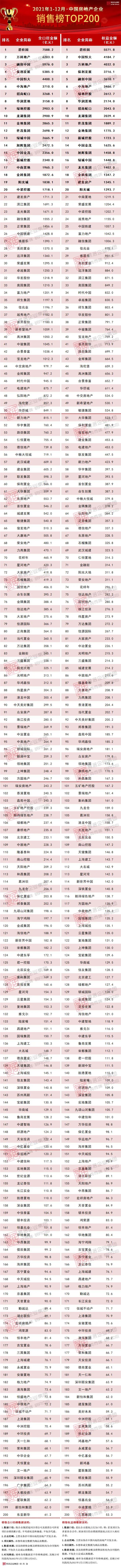 原標題: 2021年中國房地產企業銷售TOP200排行榜