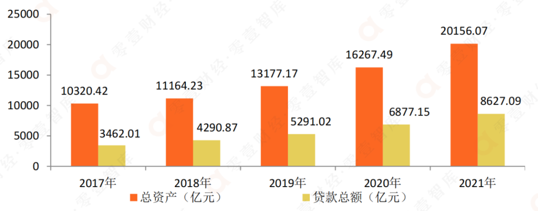 零壹智庫選取總資產(chǎn)與貸款總額兩項(xiàng)指標(biāo),觀察寧波銀行2021年業(yè)績表現(xiàn)。從總資產(chǎn)規(guī)模來看,寧波銀行從2017年的10320.42億元,增長到2021年的20156.07億元,增幅接近翻倍,進(jìn)一步凸顯其“城商行優(yōu)等生”的獨(dú)特優(yōu)勢;從貸款總額來看,寧波銀行從2017年的3462.01億元,增長至2021年的8627.09億元,增幅達(dá)到1.5倍。面對復(fù)雜嚴(yán)峻的國內(nèi)外經(jīng)濟(jì)形勢,寧波銀行保持信貸業(yè)務(wù)穩(wěn)健運(yùn)行,在扶持實(shí)體經(jīng)濟(jì)之中形成差異化的比較優(yōu)勢,重點(diǎn)加強(qiáng)對于普惠小微、制造業(yè)和綠色金融等領(lǐng)域的信貸投放力度。