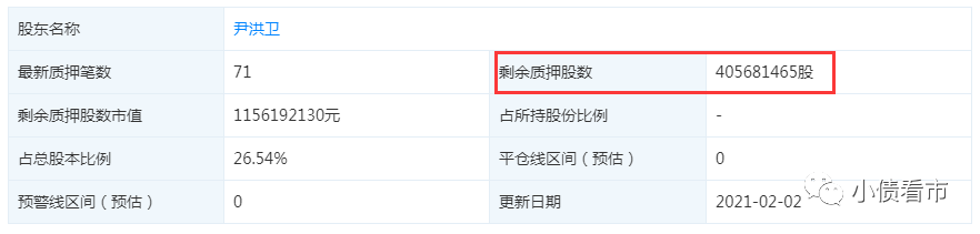 截至2021年2月,嶺南股份控股股東尹洪衛已質押4.06億股公司股份,占所持股票數量的78.7%,可以看出質押率很高。