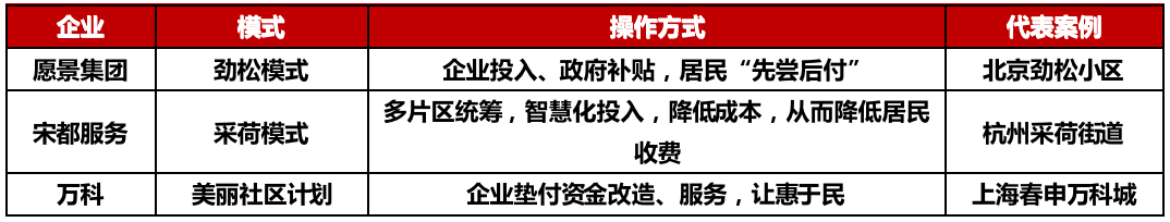 表:典型企業老舊小區改造模式