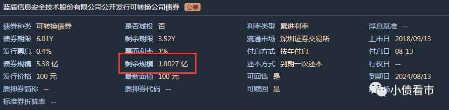在存續債券方面,《小債看市》統計目前藍盾股份僅存續“藍盾轉債”這一只可轉債,存續規模1億,轉股金額4.38億元,轉股價5.79元。