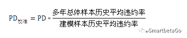 巴塞爾II監管的穩健性要求出發,模型結果應該校準到多年樣本總體的平均違約概率