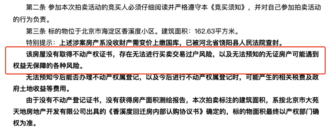 雖然看似跟羅先生一樣撿了大便宜,但是該競買人可能不知道的是該套房源沒有取得不動產(chǎn)權(quán)證書。同樣的在競買須知中,法院對此情況已經(jīng)做了說明,所以競買人需要為自己的決定負(fù)責(zé)。