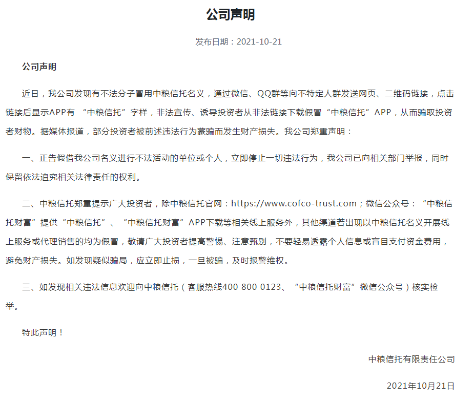 去年躺槍的有某基金、知名私募、信托的中信和安信也紛紛發(fā)公告表示這一問題。數(shù)據(jù)顯示,近10家信托公司發(fā)布了聲明,稱有不法分子冒充信用公司名義進(jìn)行金融詐騙。