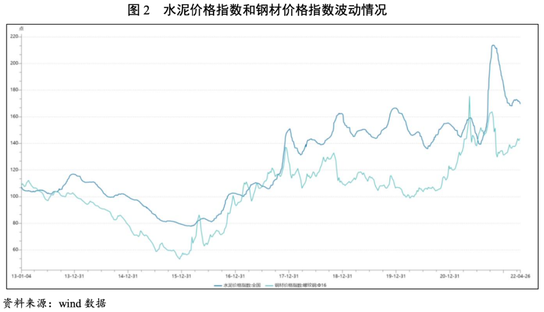 建筑施工企業(yè)收入季度性波動明顯,2022年一季度收入及利潤環(huán)比普遍負(fù)增長,主要受冬季停工影響。2022年第一季度,建筑樣本企業(yè)收入環(huán)比下降19.56%,同比增長8.29%;利潤總額環(huán)比下降23.18%,同比增長8.97%;營業(yè)利潤率中位數(shù)為8.55%,同比下降0.99個(gè)百分點(diǎn),環(huán)比下降3.05個(gè)百分點(diǎn)。總體來看,受季節(jié)性影響,2022年一季度建筑施工企業(yè)各項(xiàng)盈利指標(biāo)環(huán)比均呈負(fù)增長,收入和利潤同比增速有所提升。2021年以來,隨著經(jīng)濟(jì)及建筑業(yè)復(fù)蘇帶動需求的穩(wěn)步提升,水泥和鋼鐵價(jià)格快速回暖,利潤率水平受主要原材料價(jià)格上漲影響持續(xù)承壓,利潤率水平有所下降。