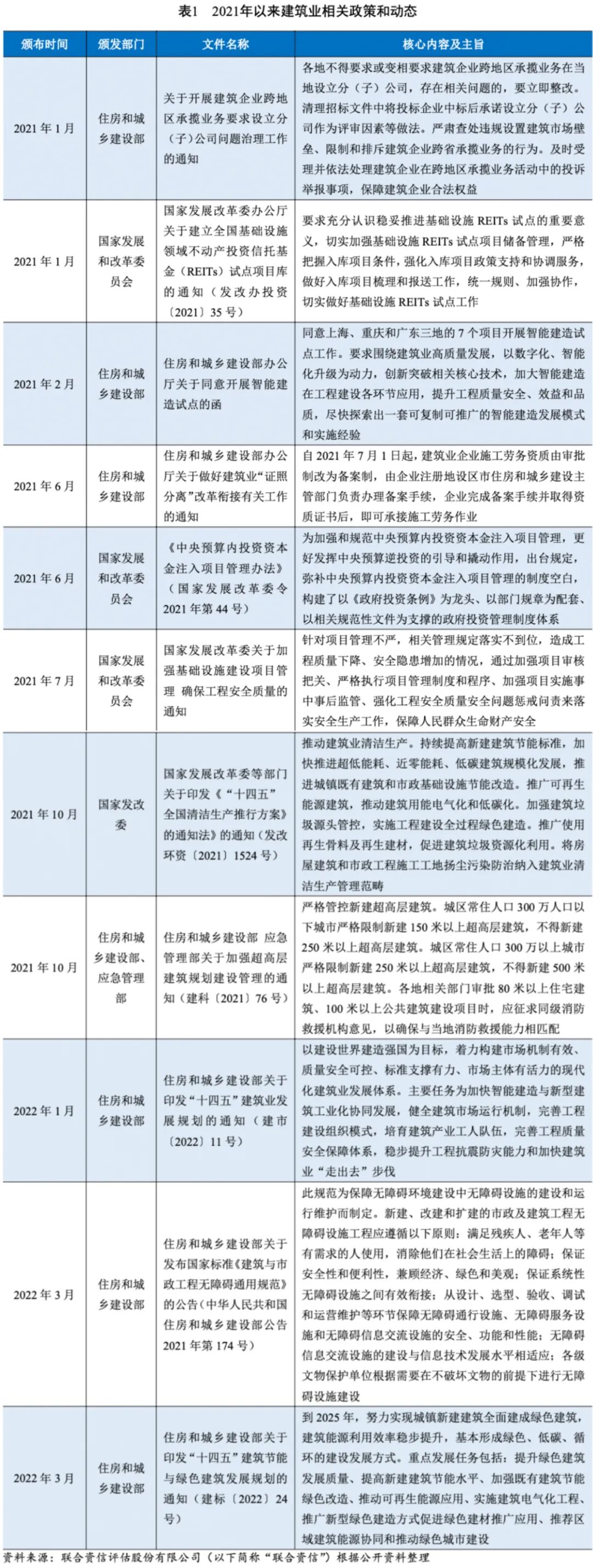 建筑行業(yè)“十四五”發(fā)展規(guī)劃強(qiáng)調(diào)行業(yè)應(yīng)從“量”的擴(kuò)張轉(zhuǎn)向“質(zhì)”的提升。2021年以來,建筑行業(yè)相關(guān)政策仍以規(guī)范行業(yè)管理和促進(jìn)行業(yè)轉(zhuǎn)型升級為主導(dǎo)。隨著各地綠色建筑發(fā)展速度的提升,有望持續(xù)推動裝配式建筑、光伏建筑一體化等的發(fā)展。