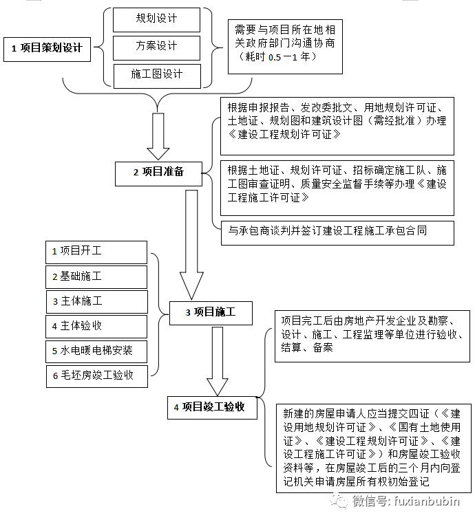 房地產(chǎn)開發(fā)建設(shè)過程可以細分為四個階段:分別為項目策劃設(shè)計階段、項目準備階段、項目施工階段和項目竣工驗收階段。