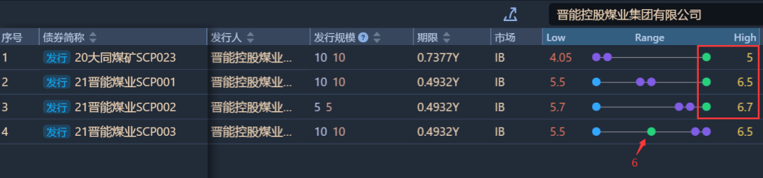 新發(fā)債券融資是市場高度關注的一點,也是現(xiàn)在看來最大的難點之一。從去年11月永煤違約至今,煤企很難新發(fā)債券,晉控煤業(yè)在這段時間(去年11月11日以來)里僅發(fā)行了4筆債券,如圖所示,前三筆發(fā)債的最終定價都超出了預期定價范圍的上限,最新一筆于5月中旬發(fā)行成功的“21晉能煤業(yè)SCP003”中標利率終于有所回落,為6%。