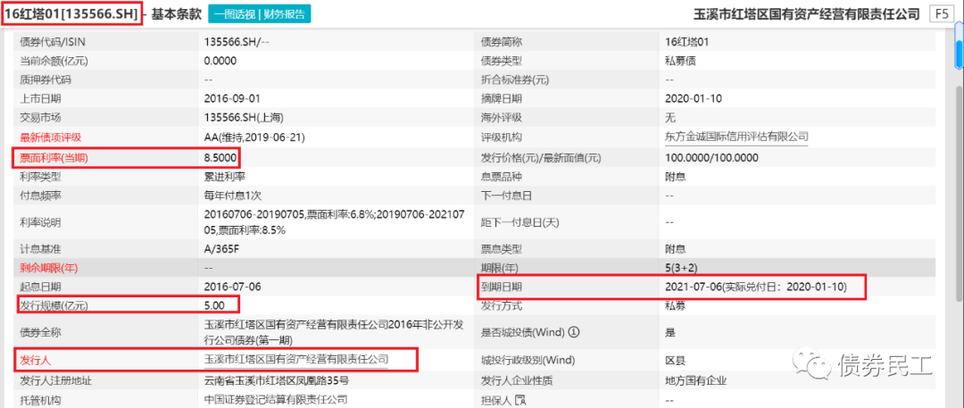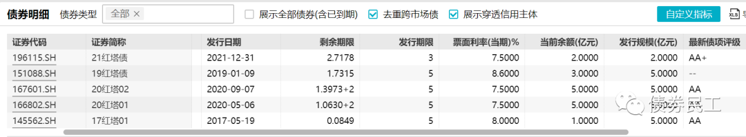 通過公開信息查詢可知,紅塔國資償還的債券應該是“16紅塔01”,發行日期為2016年7月6日,發行規模為5億元,票面利率為8.50%。“16紅塔01”于2020年1月10日提前到期,償還資金應該就是2019年發行的“19紅塔債”。但是從公開信息來看,“19塔債”的發行時間是2019年1月9日,償還日期為2020年1月10日,中間隔了一年的時間,應該是經過了債券募集資金用途的變更。