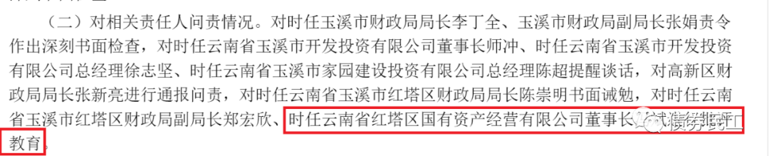 根據公開信息,因為政府債務的化解不實,紅塔國資的時任董事長被財政局批評教育。