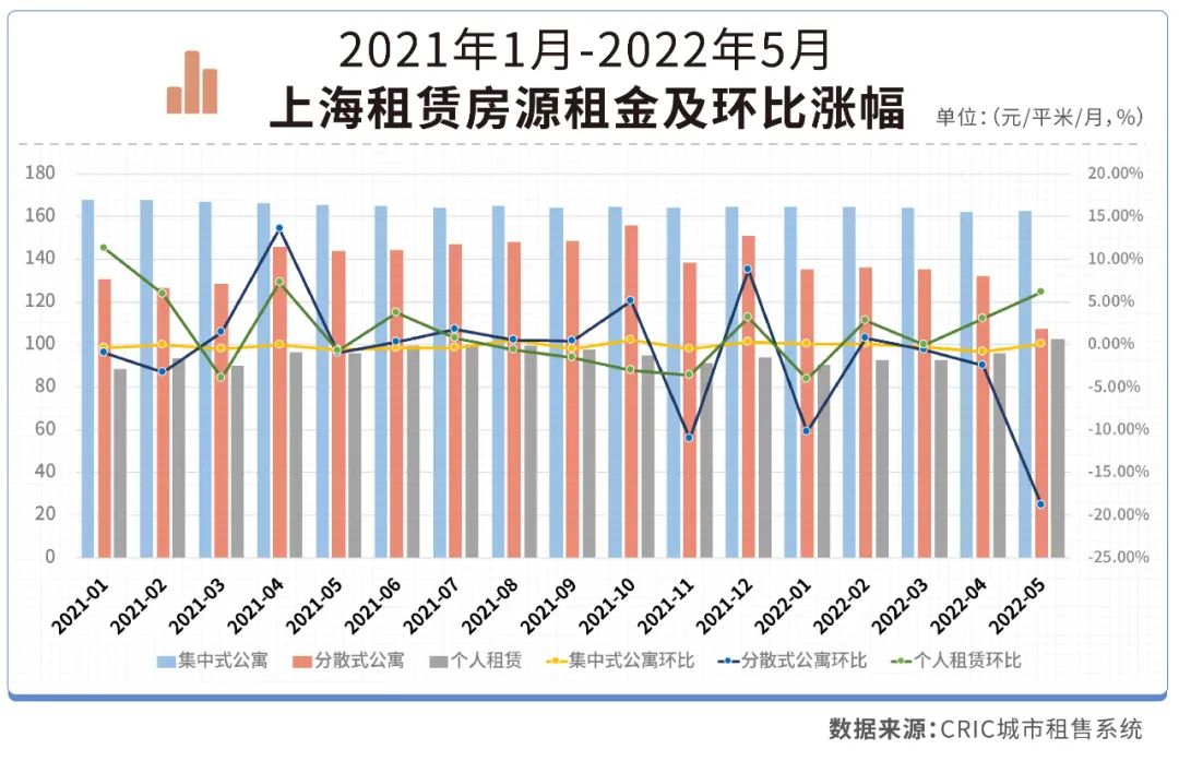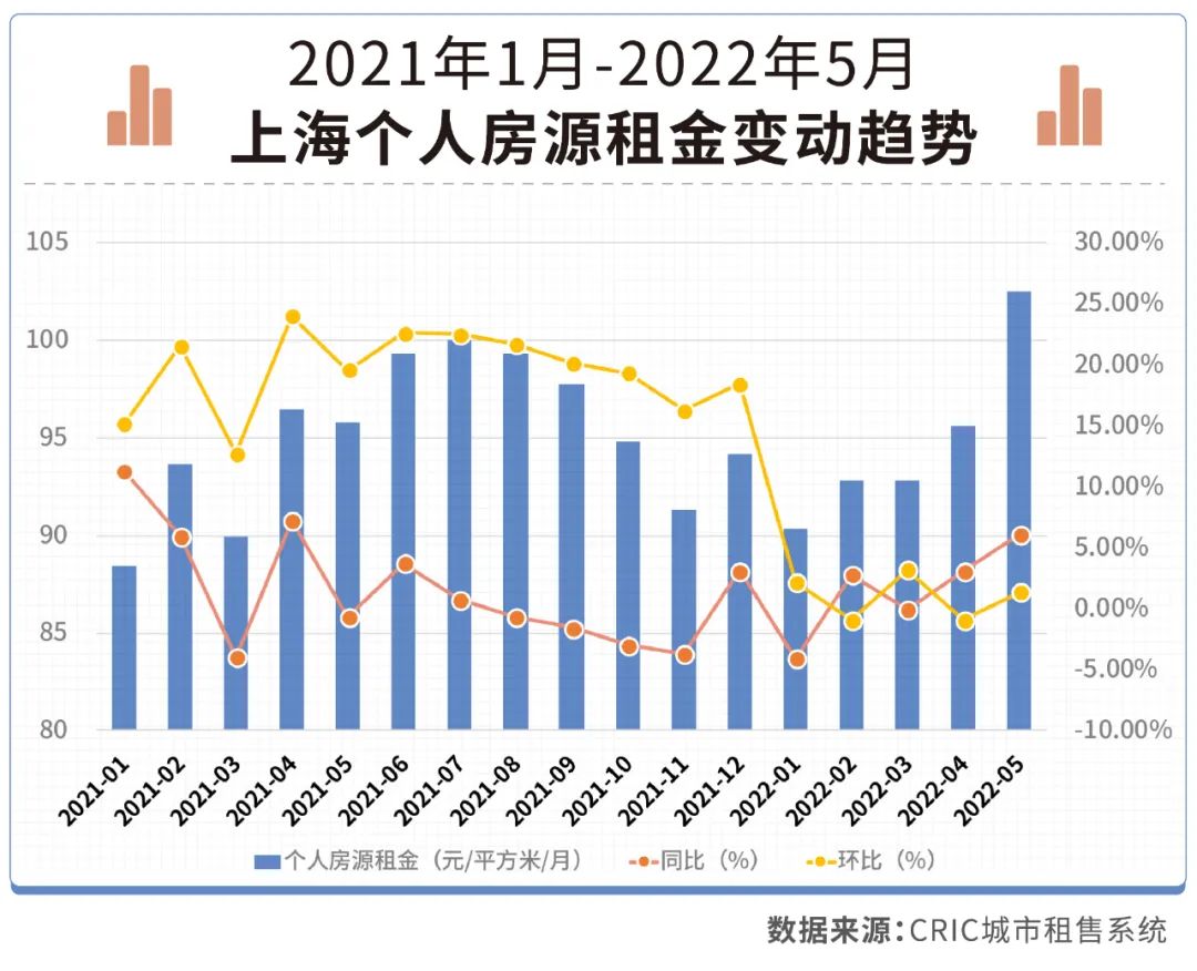 上海個(gè)人房源租金在疫情期間的4月和5月出現(xiàn)了“兩連漲”。