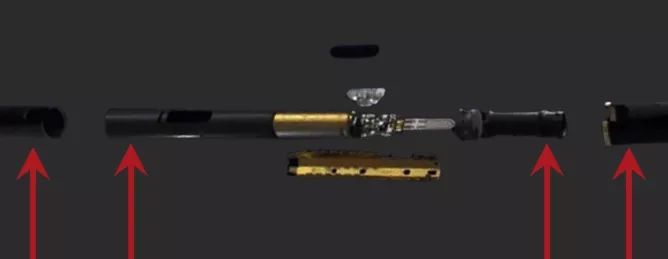 電子煙構造并不算太復雜,主要由電芯、霧化器與塑膠部件等構成。盈趣科技供應的精密塑膠部件到底是什么呢?大致如下圖中箭頭所指的地方: