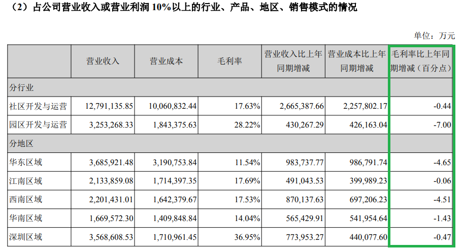 而且我們看,所有片區的的毛利率全部下滑的,無一幸免。