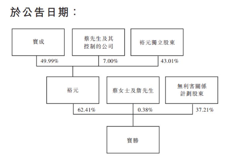 2008年,裕元集團將寶勝國際在港股分拆上市。十年后的2018年1月21日,寶勝國際公告稱,寶成工業提出每股2.03港元私有化上市公司,即將大股東裕元集團和其余股東手中全部股份收購注銷,將耗資109億港元。前一交易日收盤價為1.54港元,溢價31.82%。下圖為假設私有化完成后的持股情況: