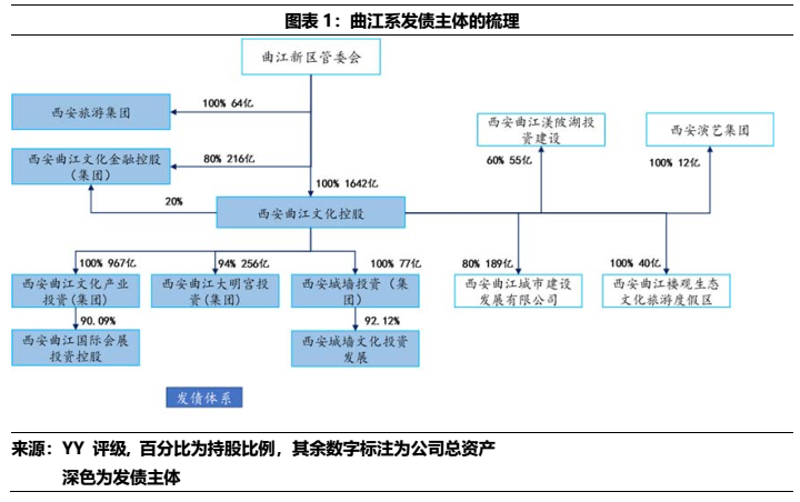 首先我們分析了目前曲江國資體系內重要發債平臺及其核心子公司的分布,其次將拆解的第一個對象錨定為盤子最大的曲文控體系