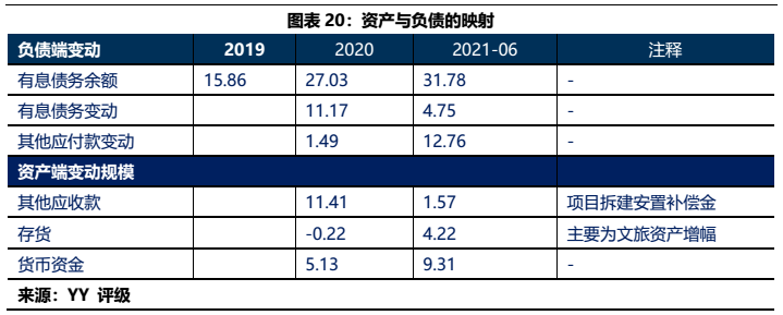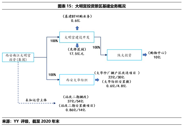 4)西安城墻投資體系資金沉淀規模小,2020年起始的15.92億有息債務增量沉淀方向以文旅(4億)和城投(12.98億)為主,對整個體系影響不大。