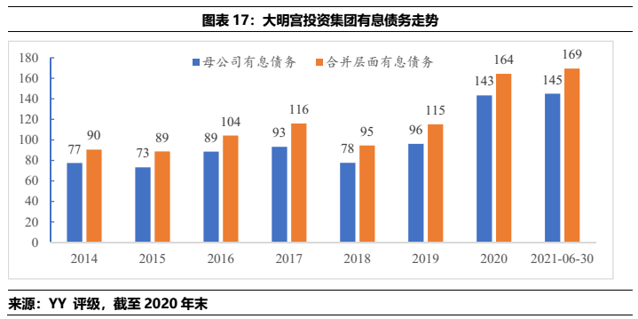 3) 大明宮投資母公司2019-2020年增加的66億元有息債務,多通過往來款形式沉淀于相關城投類資產(48.69億),地產等產業相對較少。但需要注意到的一點在于21年公司拿地兩宗,按權益來看出資規模在12億元左右,產業類資金體量有所增長。