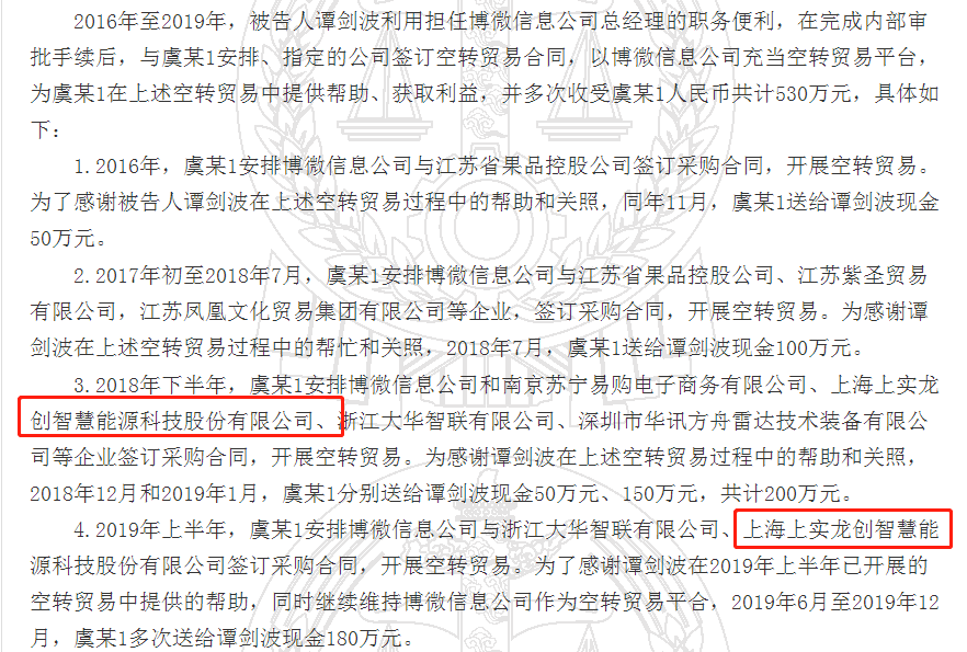 (截自:《譚劍波受賄一審刑事判決書》)