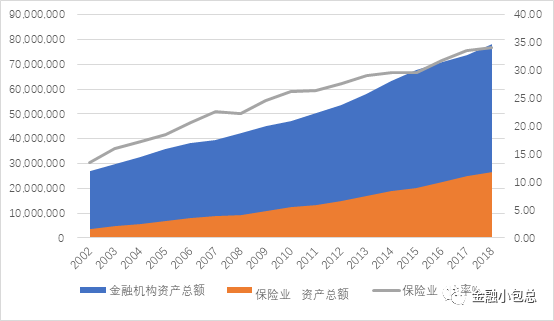 受益于保費規(guī)模的超高速增長,臺灣地區(qū)保險公司也成為金融細分領(lǐng)域中成長性最快的子板塊,臺灣地區(qū)保險公司總資產(chǎn)占全部金融機構(gòu)總資產(chǎn)比重從2002年的16%提高到2018年34.14%。