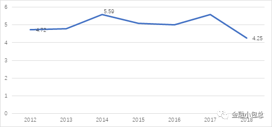 圖十九:2012-2018年臺灣地區(qū)保險業(yè)凈值比走勢