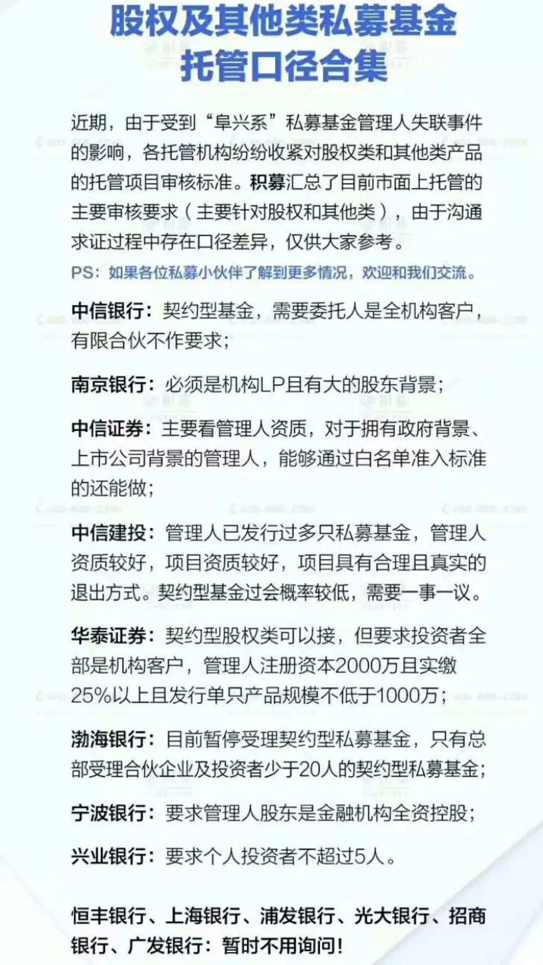 “托管行要求,私募基金不能向自然人募集,或者是限制投資人人數(shù),之前搭了個(gè)幾十人的高凈值銷售團(tuán)隊(duì)基本廢了…”