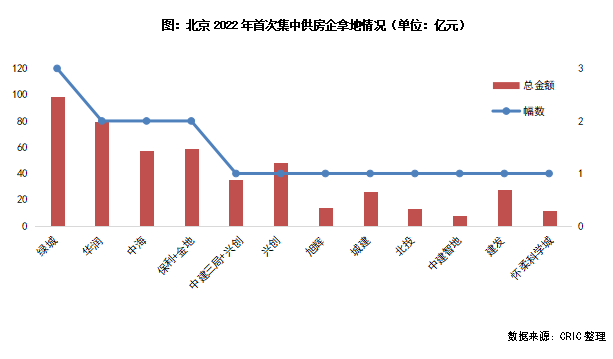 此外中海、華潤也各落2子,保利和金地也通過聯合體的形式拿下2宗地塊,10強房企中有5家本次在北京拿地。此外規模房企旭輝、建發也有所斬獲,北京本土平臺公司(興創、北京城建、北投、懷柔科學城)拿地占比約為三成左右(按幅數計算)。品牌房企對北京的參拍意愿仍然強烈。