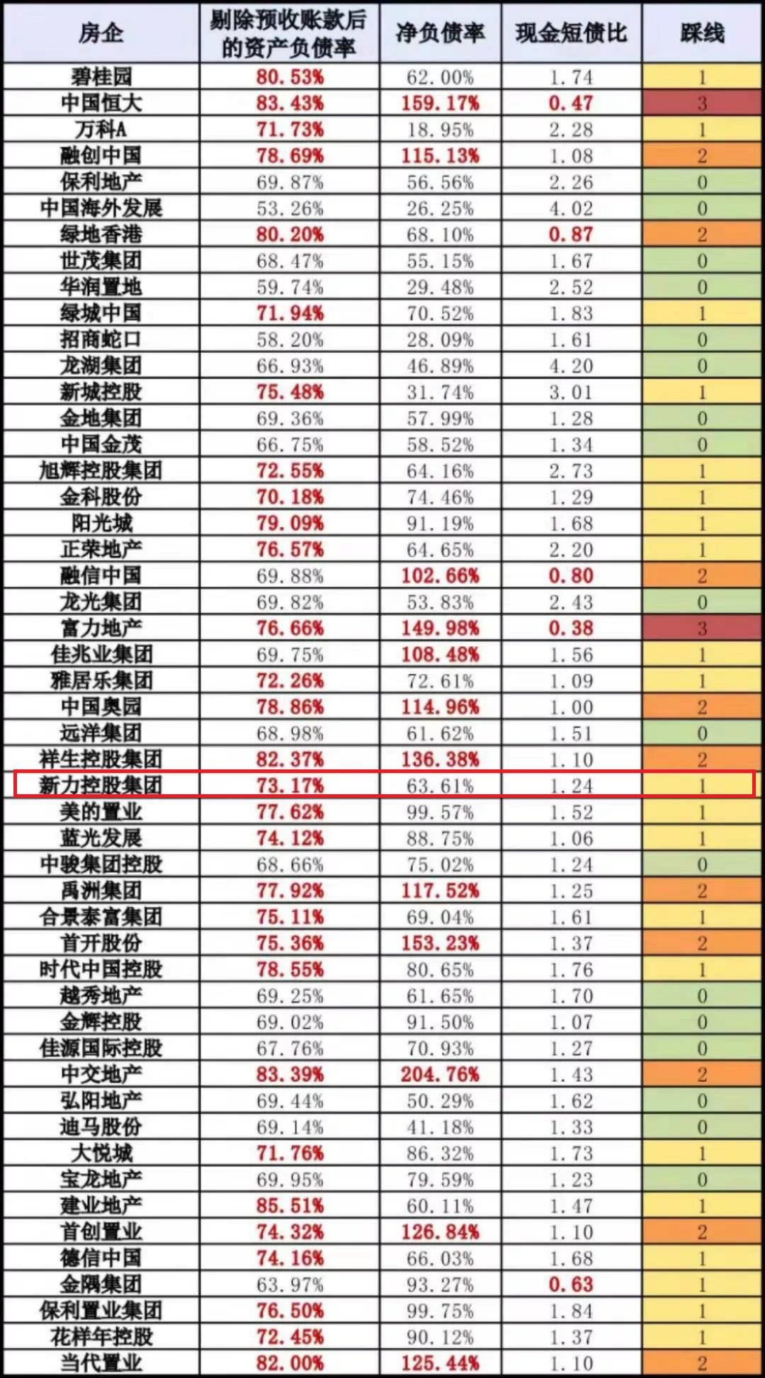 另外值得一說的是,杠桿地產(chǎn)注意到,根據(jù)新力控股集團2021年中期業(yè)績,剔除預收賬款的資產(chǎn)負債率超73%,略高于紅線標準。如下圖。