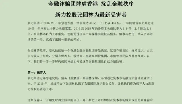 文件內(nèi)容顯示,新力董事長張園林身陷金融騙局,其在推動公司上市及上市之后的數(shù)筆融資中被一個境外金融高利貸集團設(shè)下圈套,成為金融詐騙集團的受害者。
