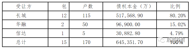 2017年長城收包最多,占比80%,華融次之,占比15%。預計18年,長城和華融有比較強烈的出包的意愿,民營投資機構可以尋找結構性組包的機會,后稷投資的合作伙伴華東長信歡迎同行交流。