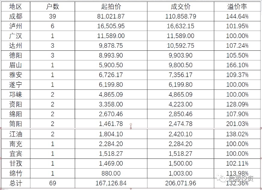 從成交戶數上分析,主要集中在成都地區的上拍數量最大,流通性最好。