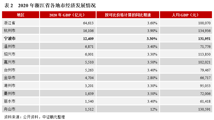 (1)區域經濟:近三年寧波經濟呈現出較強韌性,實現了穩健增長。按常住人口計算,2020年寧波人均GDP為131,951元,為全國人均GDP的187.50%。