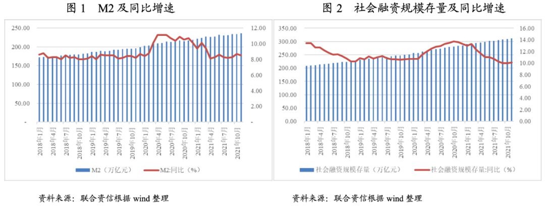 2021年以來,隨著疫情逐步得到控制以及經(jīng)濟(jì)逐漸恢復(fù),央行的貨幣政策由“穩(wěn)增長”向“防風(fēng)險(xiǎn)和調(diào)結(jié)構(gòu)并重”轉(zhuǎn)變,M2和社會(huì)融資規(guī)模增速在經(jīng)歷了一季度的高點(diǎn)后逐步回落至疫情前水平。