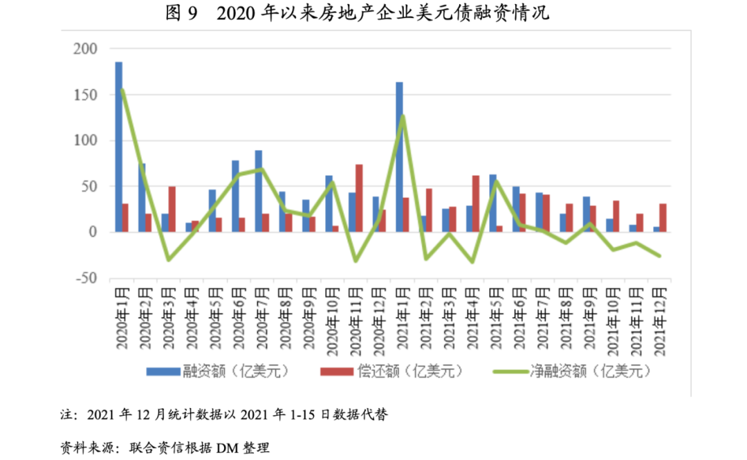 2021年,房地產(chǎn)行業(yè)銀行信貸增速持續(xù)下降,非標(biāo)融資規(guī)模繼續(xù)下滑;隨著信用風(fēng)險(xiǎn)事件的發(fā)生和持續(xù)發(fā)酵,境內(nèi)債及美元債市場凈融資額均大規(guī)模凈流出。展望2022年,行業(yè)整體現(xiàn)金流緊張態(tài)勢無可預(yù)見性好轉(zhuǎn),且考慮到金融機(jī)構(gòu)房地產(chǎn)貸款集中管理制度,主要金融機(jī)構(gòu)仍將壓降房地產(chǎn)貸款增速,加之美元債市場融資受阻,盡管境內(nèi)債市場目前有邊際放松跡象,預(yù)計(jì)2022年房地產(chǎn)開發(fā)企業(yè)融資環(huán)境仍不樂觀。