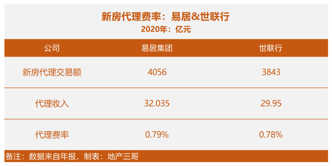 新房代理來看,以易居和世聯(lián)行的數(shù)據(jù):費(fèi)率約為0.78%。