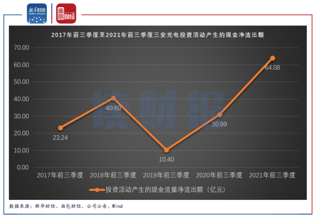 圖2:2017年前三季度至2021年前三季度三安光電投資活動產生的現金凈流出額