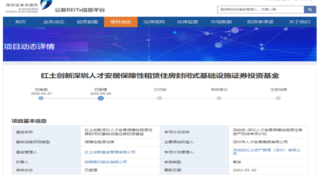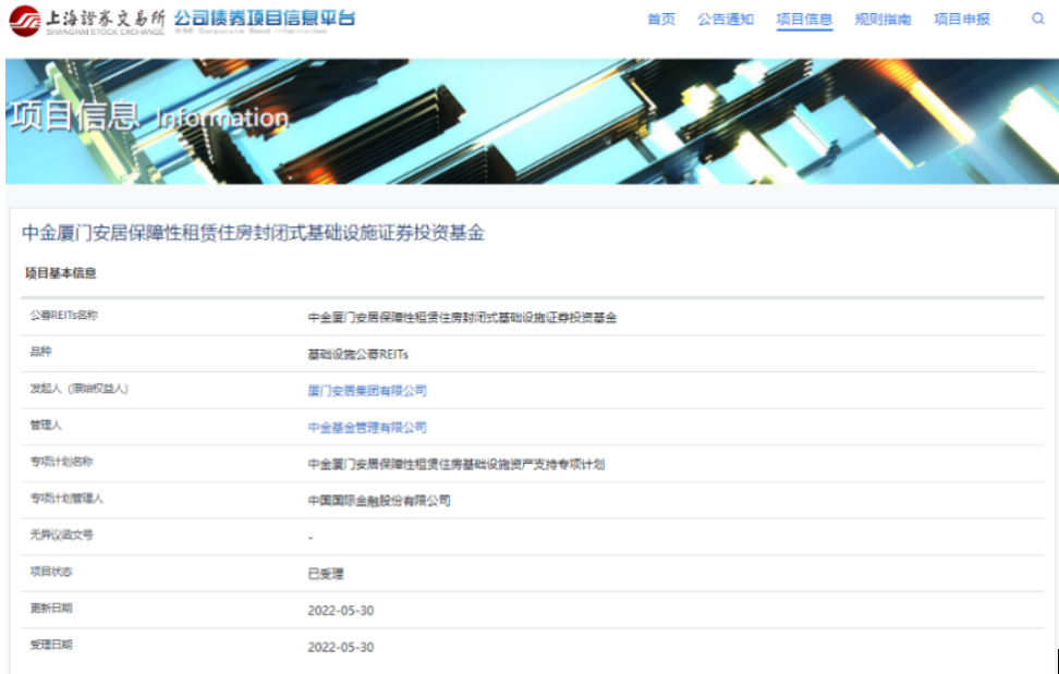 5月27日,中金廈門安居保障性租賃住房、紅土創新深圳人才安居保障性租賃住房兩支REITs分別向上交所、深交所和證監會報送申請材料,成為首批上報的兩單保障性租賃住房REITs。