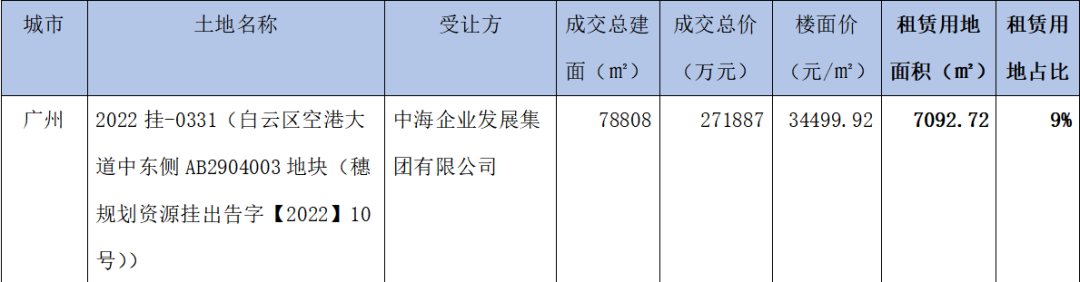 五城涉租賃用地拿地的主角依舊為國央企。五城成交的租賃用地中,最大一宗租賃用地被越秀以2.01億元競得,該地塊位于廣州市白云區廣龍路,純租賃用地,建設面積約6.9萬平方米。