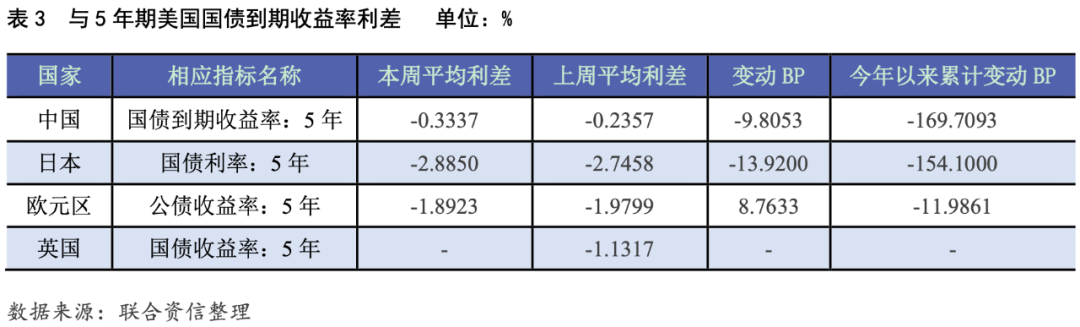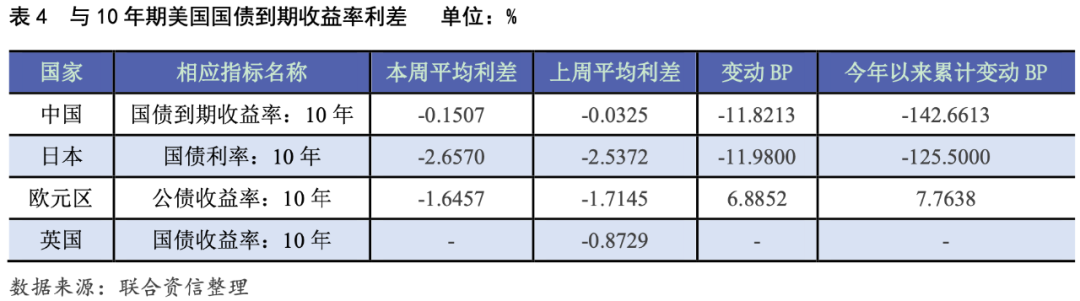 各期美債收益率全線上漲,主要經濟體國債與美債收益率利差走勢不一
