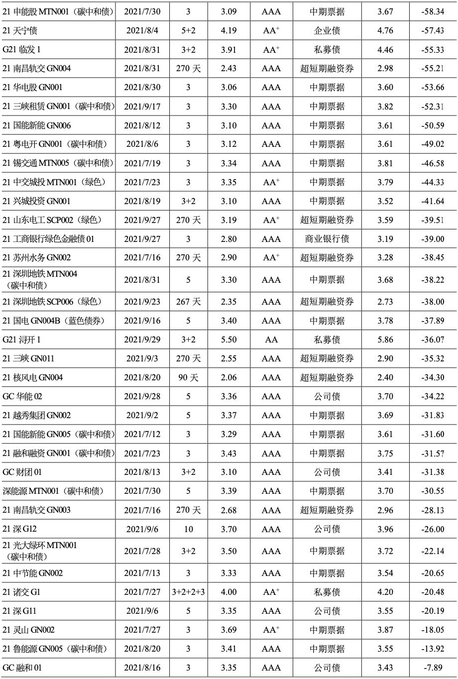2021年三季度,我國新發綠色債券中有94只擁有可比債券,其中68只呈現成本優勢,占比72.34%。