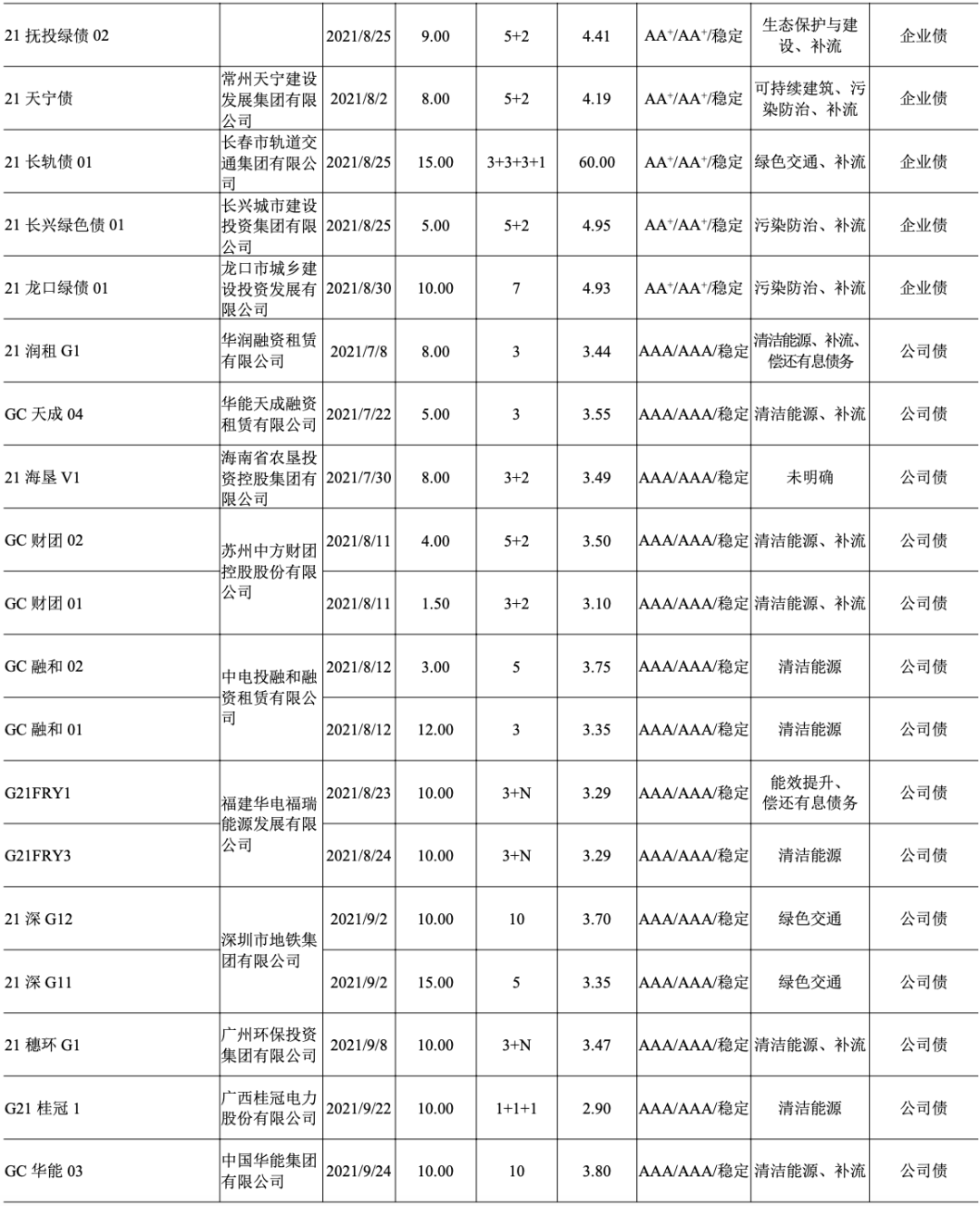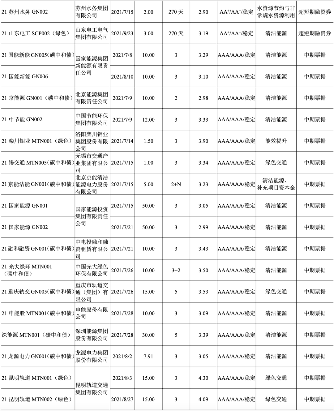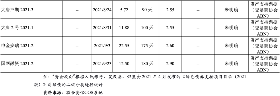 2021年8月31日,南方電網公司發行“南網融資租賃公司2021年度融資租賃第一期綠色資產支持商業票據(ABCP)”,發行規模16億元,票面利率2.58%,發行期限120天,募集資金將用于風力和光伏發電項目。該債券系全國首只公募碳中和資產支持商業票據,據綠色評估機構測算,本期票據募集資金用于碳減排項目,將實現年減碳排量114.47萬噸。(摘自中國新聞網,2021年8月31日)