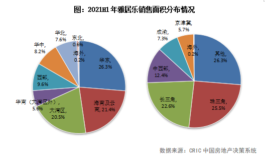 華東區(qū)域貢獻(xiàn)最大,戰(zhàn)略深耕城市群銷售占比過(guò)半。2021年上半年,雅居樂(lè)預(yù)售貢獻(xiàn)來(lái)自逾80個(gè)城市215個(gè)項(xiàng)目。從區(qū)域分布來(lái)看,華東區(qū)域貢獻(xiàn)最大,銷售面積占比26.3%,相比2020年末提升3.4個(gè)百分點(diǎn)。其次是華南區(qū)域,占比總計(jì)26.1%,其中大灣區(qū)達(dá)20.5%。海南和云南總銷售占比也提升至21.4%。從城市群分布來(lái)看,“2+3+N”城市群策略成效明顯,珠三角和長(zhǎng)三角城市群作為戰(zhàn)略深耕城市群,貢獻(xiàn)率達(dá)48%。