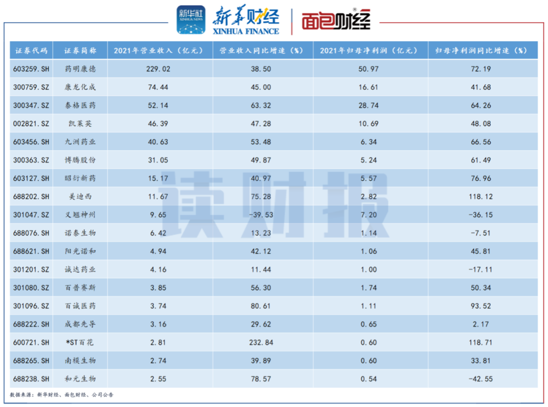 根據(jù)申萬醫(yī)療研發(fā)外包行業(yè)分類,截至2022年4月24日,板塊內(nèi)21家滬深兩市上市公司中已有18家披露2021年年報或業(yè)績快報。
