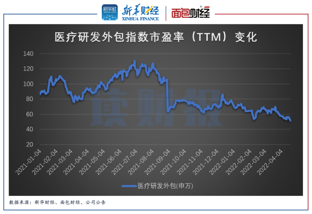 但另一方面,隨著股價上漲估值抬升、對業(yè)績持續(xù)性的擔(dān)憂等因素影響,醫(yī)療研發(fā)外包行業(yè)2021年下半年以來持續(xù)面臨估值下行壓力。