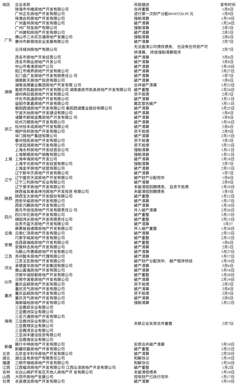 媒體披露的數(shù)據(jù)顯示,從2019年開年到2019年12月12日,宣告破產(chǎn)的房企為492家。另據(jù)金角財經(jīng)不完全統(tǒng)計數(shù)據(jù),2020年元旦到2020年2月,僅僅兩個月,房地產(chǎn)行業(yè)內(nèi)就有70家房企有破產(chǎn)文書發(fā)布。睿和智庫也搜集了2020年部分房企破產(chǎn)的信息,見下表: