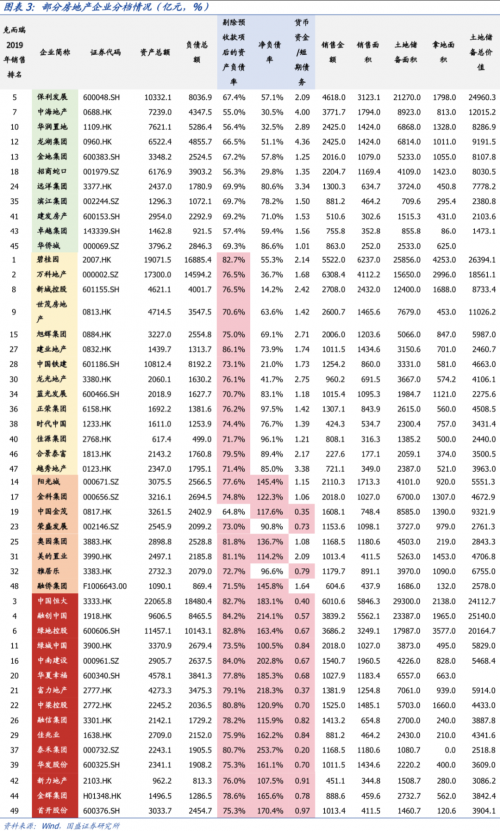 根據(jù)國盛證券按“三道紅線”標(biāo)準(zhǔn)測算,以2019年末數(shù)據(jù)為基準(zhǔn),銷售排名前50位的房地產(chǎn)企業(yè)中,均未超過警戒線的有11家,超過1條警戒線的有15家,超過2條警戒線的有8家,超過3條警戒線的有15家。