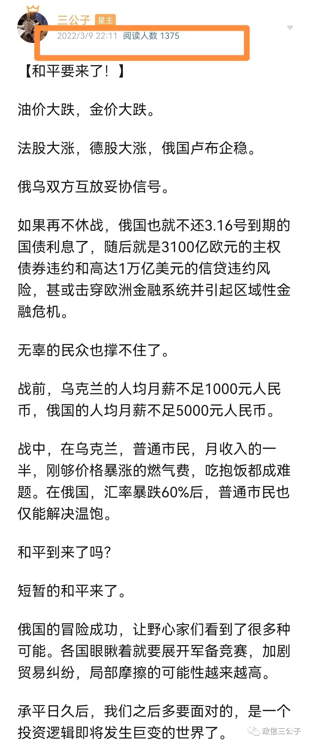 這部分,我在3月9號的公號和星球里,都做過“和平要來了”的預測和分析。從今日的結果看,預測非常精準。
