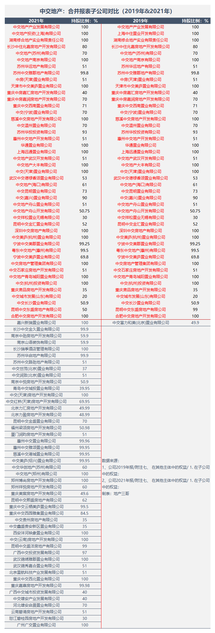 對比2019年和2021年公司合并報表子公司的情況,有以下現(xiàn)象: