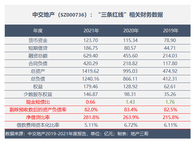 一、中交地產(chǎn)的“三條紅線”狀況