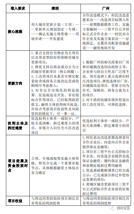 在項目選擇上,綜合考慮項目類型、權利主體及拆遷難度、項目進展以及項目收益情況。以下以深圳和廣州區(qū)域項目為例進行舉例說明: